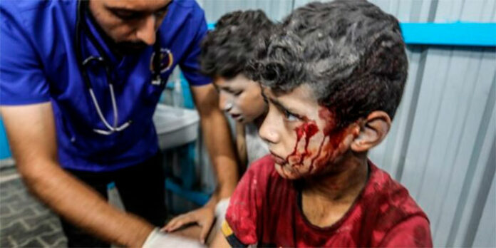 La Oficina de Prensa en la Franja de Gaza condenó hoy la masacre cometida por las tropas sionistas al bombardear una escuela que alberga a desplazados en Deir Al-Balah, en el centro de la Franja de Gaza.