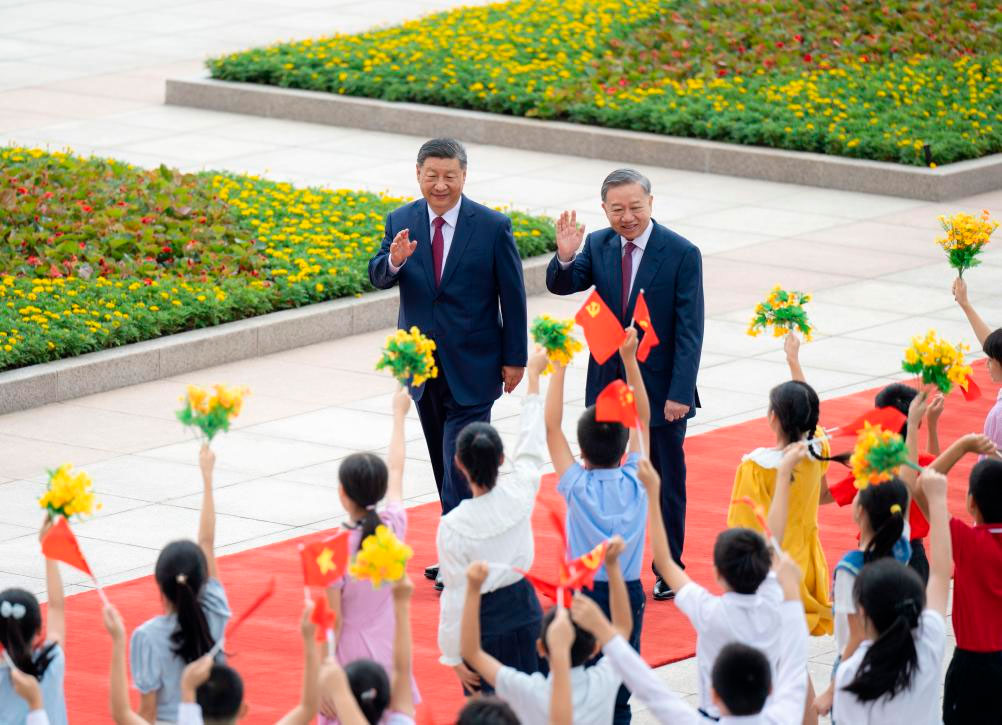 El presidente Xi Jinping reafirmó la alta prioridad y carácter estratégico que concede China a las relaciones con Vietnam, con cuyo jefe de Estado, To Lam, sostuvo conversaciones oficiales en el Gran Palacio del Pueblo, en Beijing.