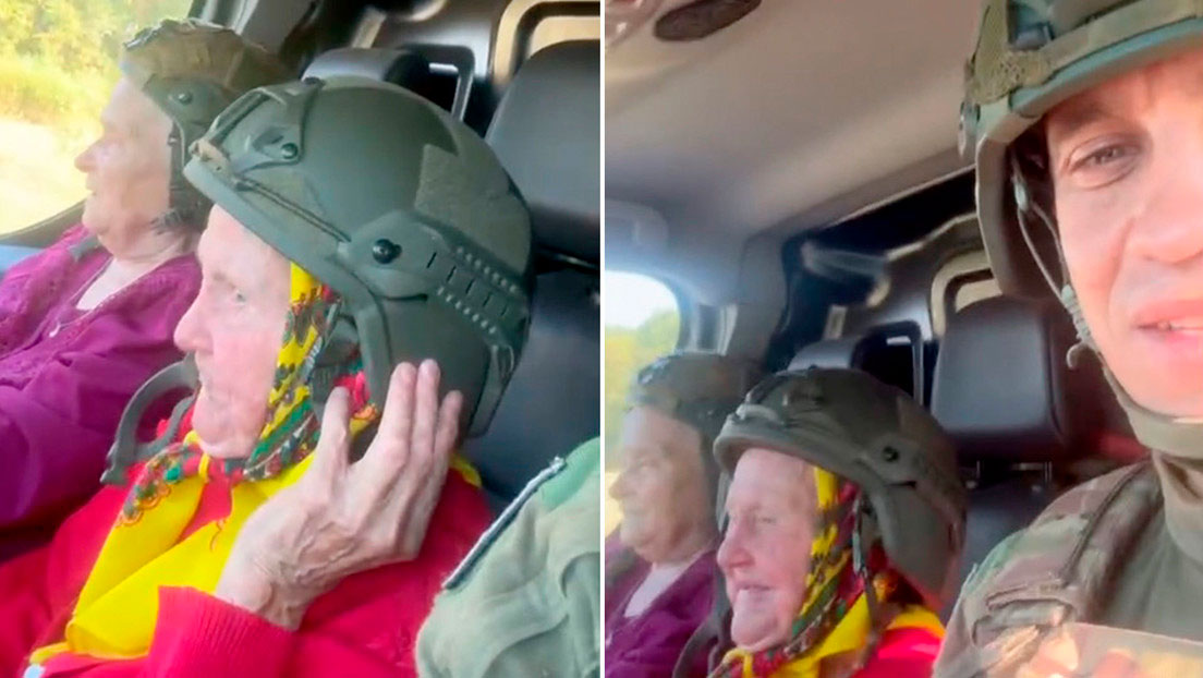 En la grabación, se ve a dos mujeres mayores con cascos militares que van de copiloto junto a un soldado con equipo táctico completo. «No se preocupen, todo irá bien. Vamos a la aldea vecina a una discoteca«, les dice el militar en broma para tranquilizarlas.