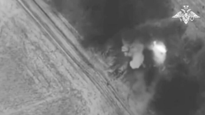 Las imágenes, filmadas en tiempo real, muestran un impacto directo que provoca la detonación y el fuego posterior, lo que demuestra el éxito de la operación.