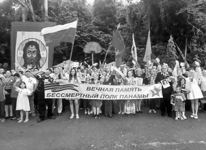 Durante la velada se realizó la marcha cívica del Regimiento Inmortal, como parte de la tradición rusa que consiste en una caminata para rendir homenaje a los familiares que lucharon en la Segunda Guerra Mundial y en la que los participantes portan retratos de sus familiares que combatieron y fallecieron en la contienda bélica.