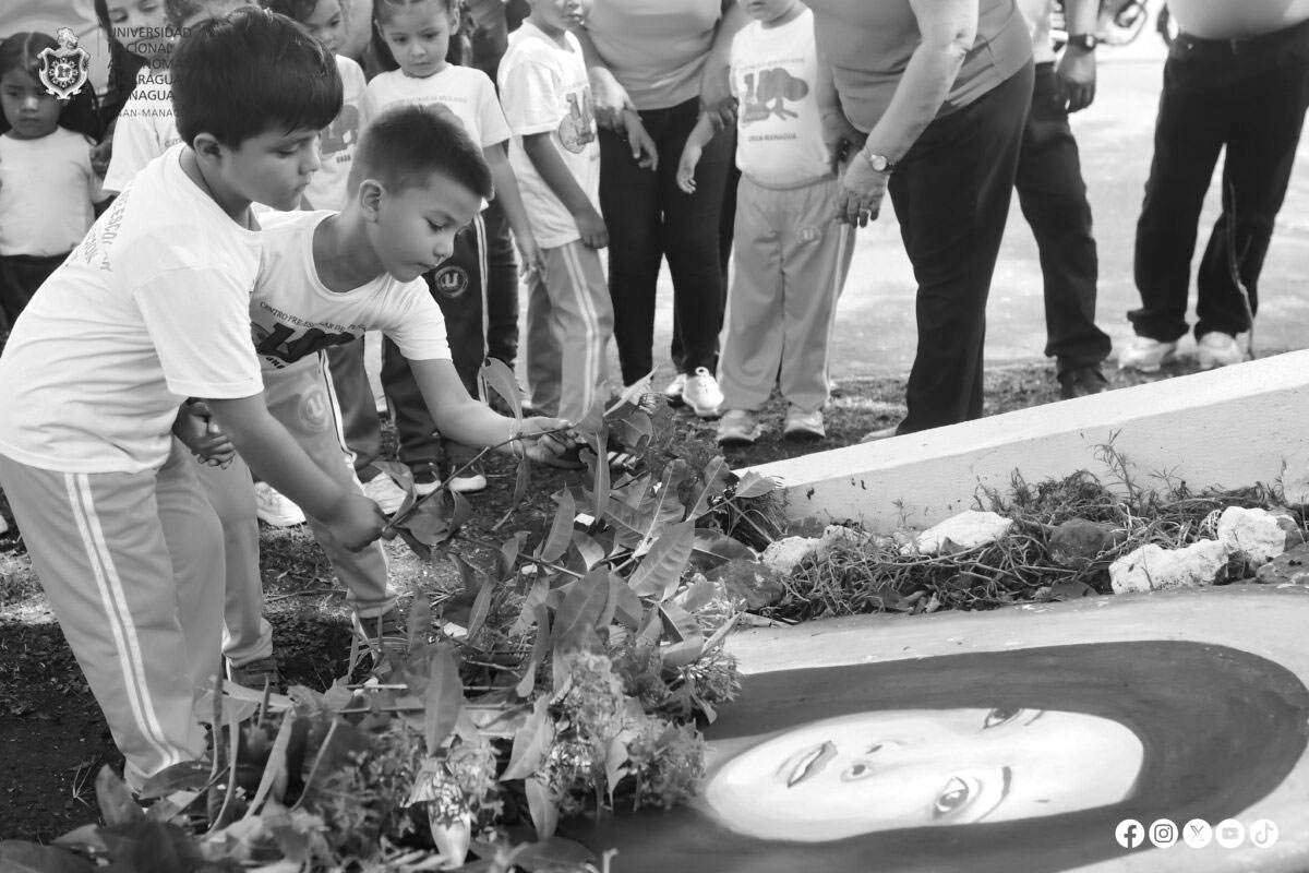 Los pequeños depositaron flores de patio en su monumento, recordando su legado heroico y el aporte de las mujeres al Triunfo de la Revolución Popular Sandinista, siendo hoy protagonistas de la restitución de derechos y las nuevas victorias en estos tiempos de paz.