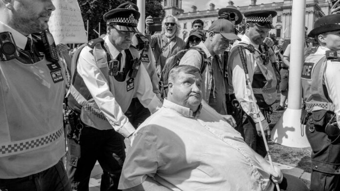 Los perros del régimen británico arrestan a un hombre inválido y ciego