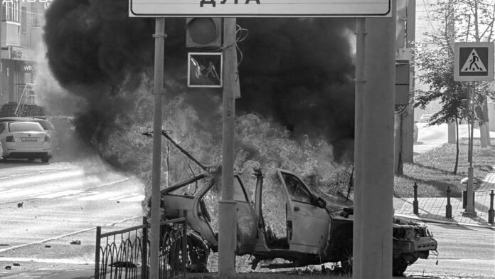 El ataque ucraniano también dejó un coche en llamas e impactó, ya por cuarta vez, contra una sede del Gobierno de la provincia de Bélgorod.