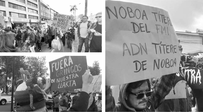 Además, durante la movilización de este jueves fue evidente el rechazo a la injerencia extranjera en Ecuador y, en particular, del Fondo Monetario Internacional (FMI), organismo con el cual Noboa mantiene un acuerdo crediticio.