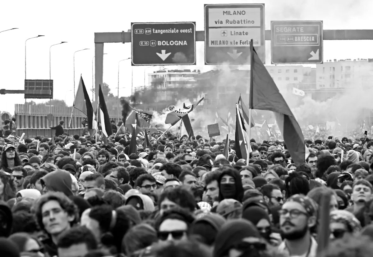 En Italia, la protesta alcanzó un tono aún más confrontativo. En Bolonia y Milán, las marchas derivaron en enfrentamientos con la policía, que respondió con gases lacrimógenos a los manifestantes que bloqueaban carreteras y lanzaban piedras y botellas. Los gritos de “¡Vergüenza, vergüenza!” y “Palestina libre” resonaron mientras columnas humanas cortaban autopistas y accesos urbanos.