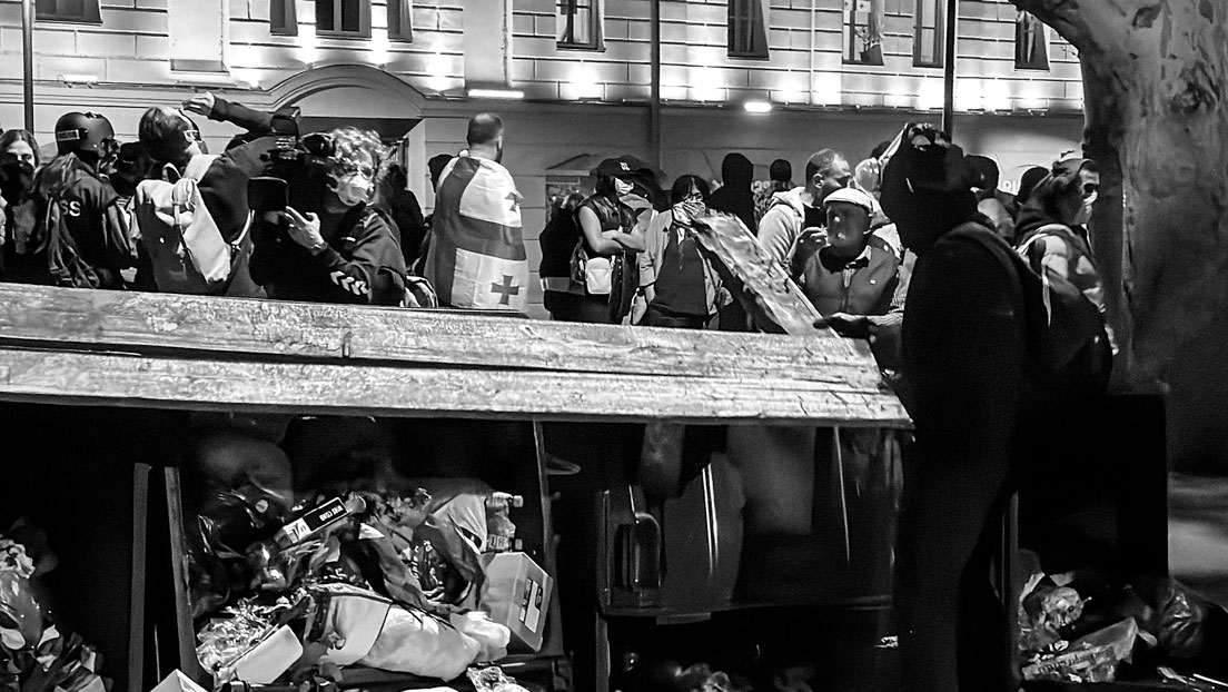 Se registraron enfrentamientos entre manifestantes y las fuerzas del orden. Los uniformados utilizaron cañones de agua y se dispararon botes de gas lacrimógeno para despejar la zona. En paralelo, los manifestantes construyeron barricadas y las incendiaron. De acuerdo con el Ministerio de Salud de Georgia, más de 20 policías resultaron heridos.