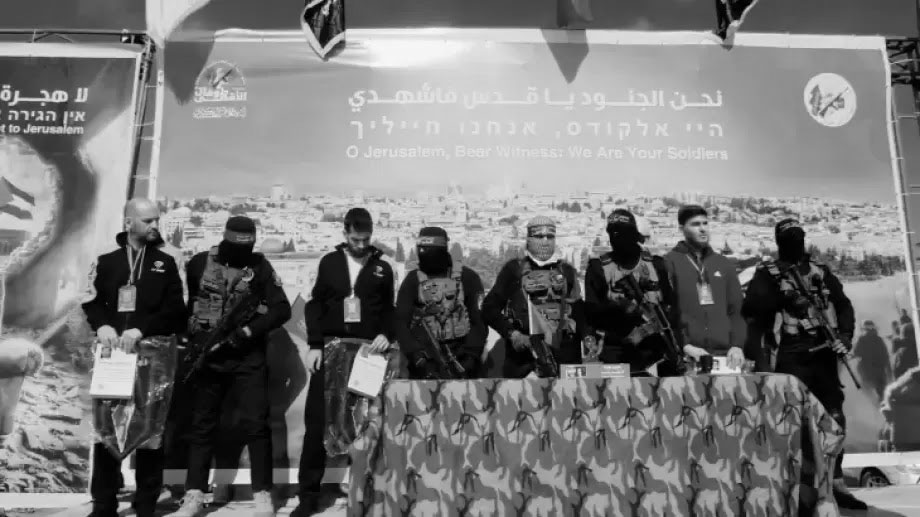 Para mayor comprensión, aquí están representantes de estas tres organizaciones en una liberación de los prisioneros sionistas. Con la cinta verde, Hamás; con el pañuelo rojo, el FPLP; con la cinta negra, la Jihad.