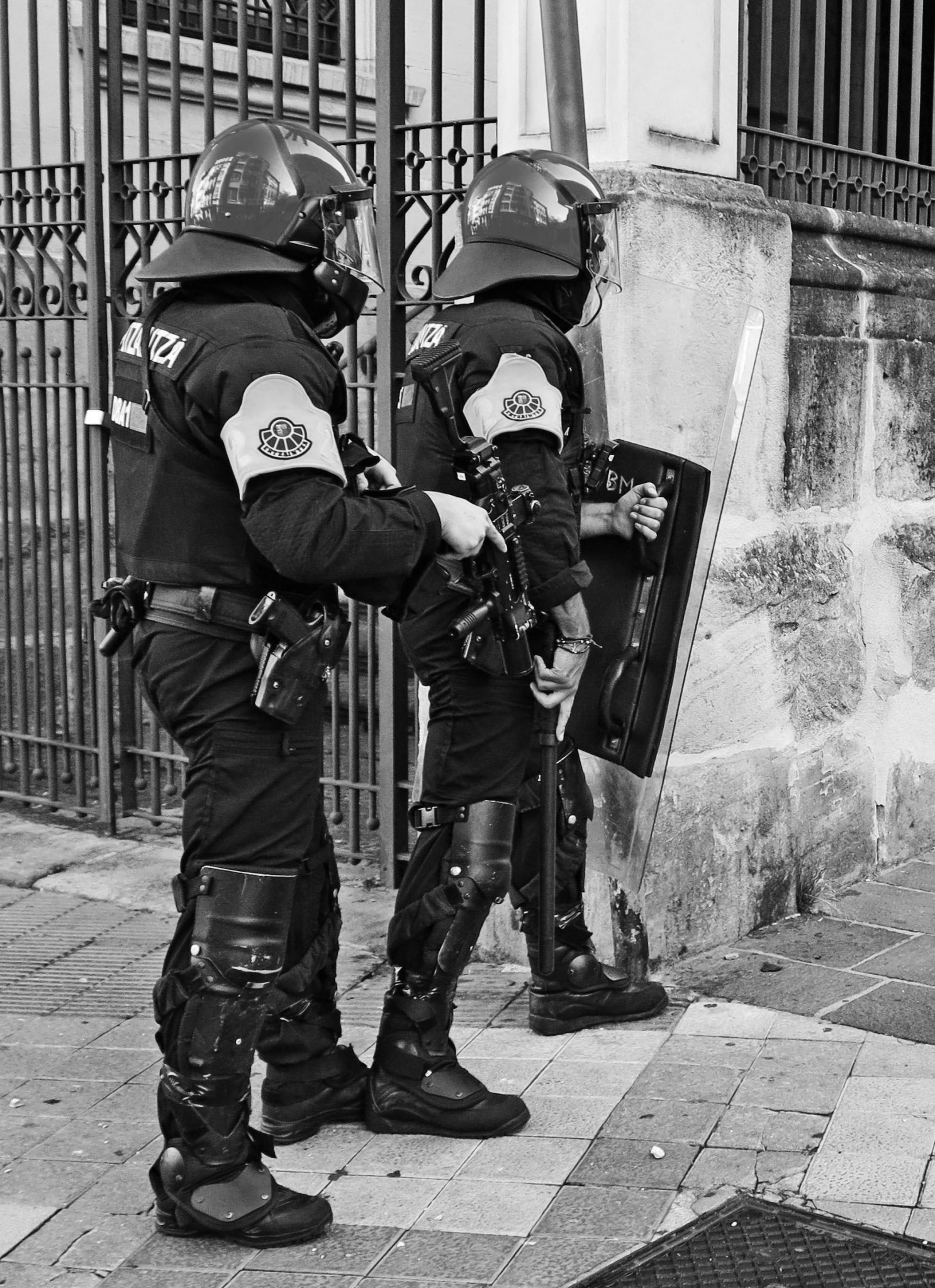 Eran pocos (cabían en un autobús), pero han contado (como siempre) con la protección de la Ertzaintza, que se ha empleado a fondo reprimiendo de manera salvaje contra quienes han intentado impedir el acto de los fascistas. La policía de la burguesía vasca ha cargado con brutalidad, hiriendo a infinidad de manifestantes antifascistas, y ha detenido al menos a 17 personas.