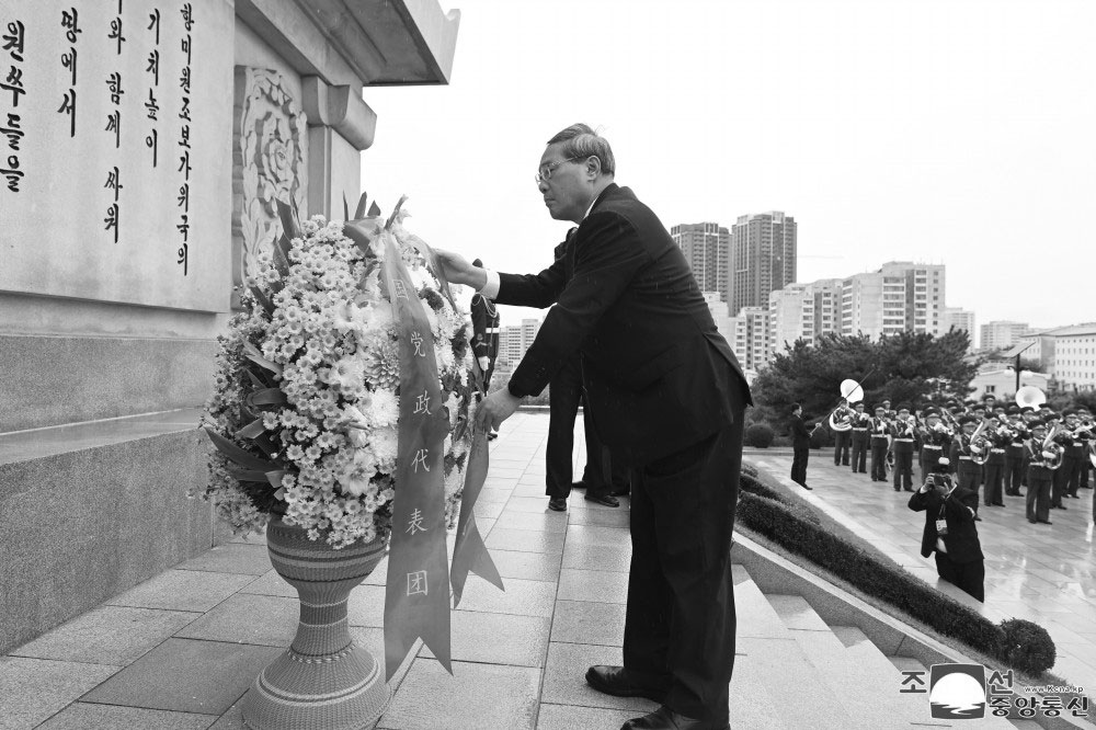 El mismo día, la delegación china estuvo también en el Cementerio de los Mártires del Cuerpo de Voluntarios del Pueblo Chino en la ciudad de Anju.