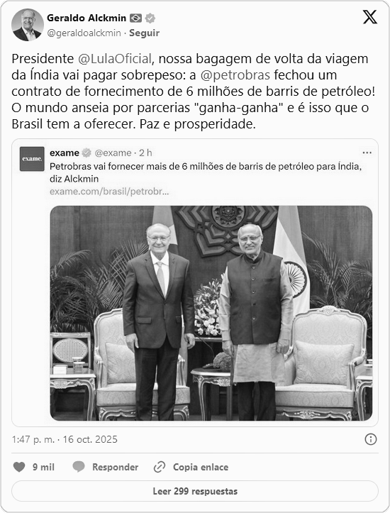 En contraste con las recientes declaraciones del presidente de Estados Unidos, Donald Trump, de que «están abandonando los BRICS«, el vicepresidente de Brasil, Geraldo Alckmin, arribó el pasado miércoles, 15 de octubre, a India para una visita oficial que busca fortalecer la alianza económica entre los dos socios del bloque de economías emergentes.