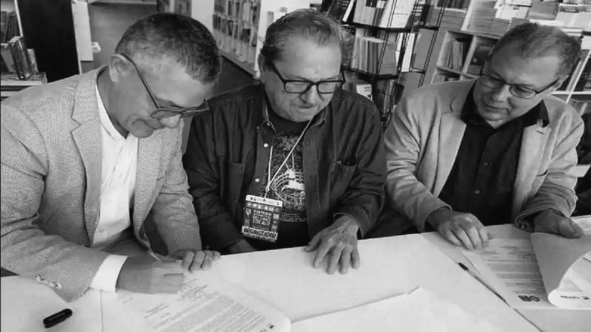 El acuerdo firmado entre Villegas y Paco Ignacio Taibo II (a la izquierda y centro, en la foto) prevé la recopilación y lanzamiento de obras emblemáticas de la producción literaria latinoamericana de mediados del siglo XX para acercar a las nuevas generaciones a títulos fundamentales.