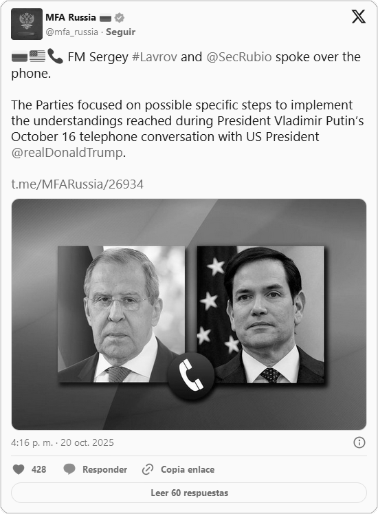 El Ministerio de Asuntos Exteriores de Rusia calificó la conversación como “constructiva”, destacando que ambas partes coincidieron en la necesidad de crear un entorno propicio para el diálogo político y el cese de hostilidades en Ucrania.