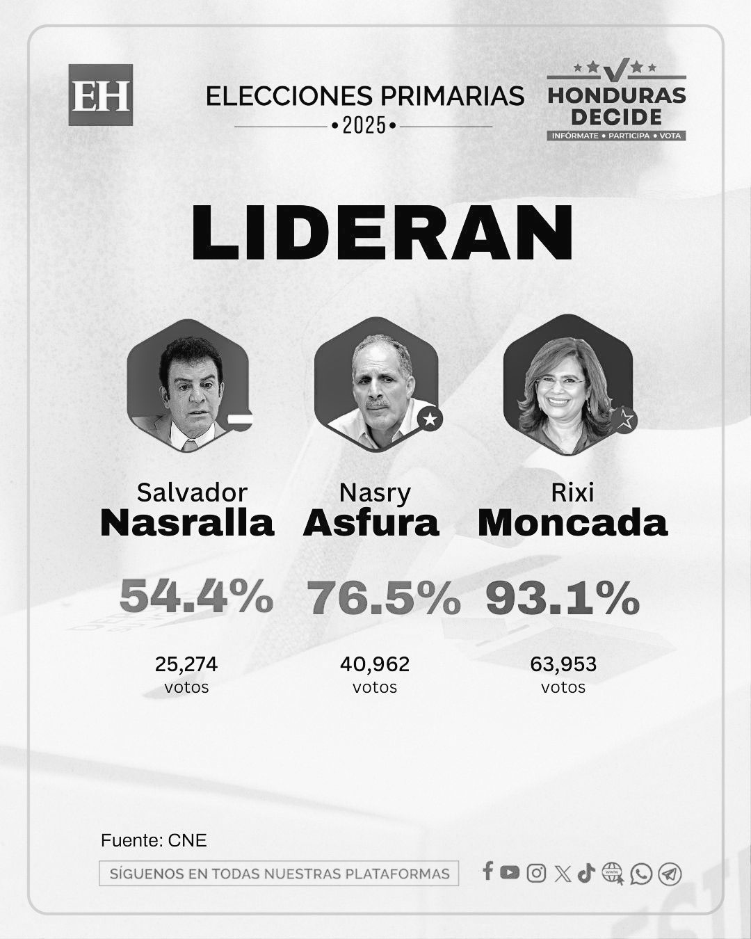 Entre los cinco candidatos existentes, solo tres tienen posibilidades reales de obtener el triunfo: la candidata de LIBRE, el del Partido Nacional (PN), Nasry Asfura y el del Partido Liberal (PL), Salvador Nasralla.