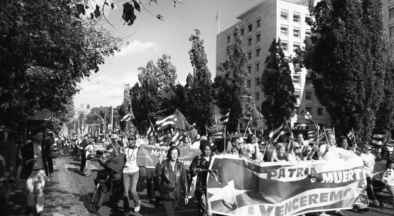 Cientos de asistentes a esta cita partieron a las 14:30 hora local desde el monumento al héroe italiano Giuseppe Manzini, en dirección a la sede de la Embajada de Cuba, e inundaron las calles con sus banderas, carteles y voces, coreando consignas en apoyo al proceso revolucionario cubano y de condena al bloqueo económico impuesto por Estados Unidos contra esa nación.