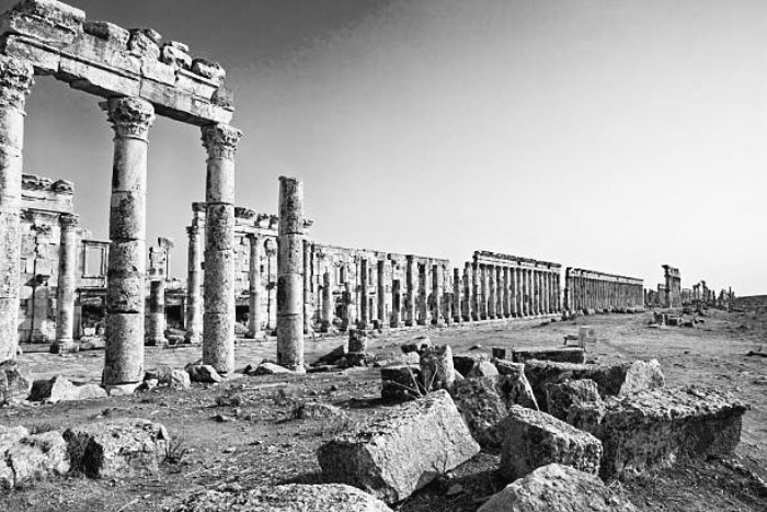 A orillas del río Orontes y unos 55 kilómetros al noroeste de Hama, en el centro de Siria, se encuentran las imponentes ruinas de Apamea, una de las ciudades más emblemáticas del mundo antiguo.