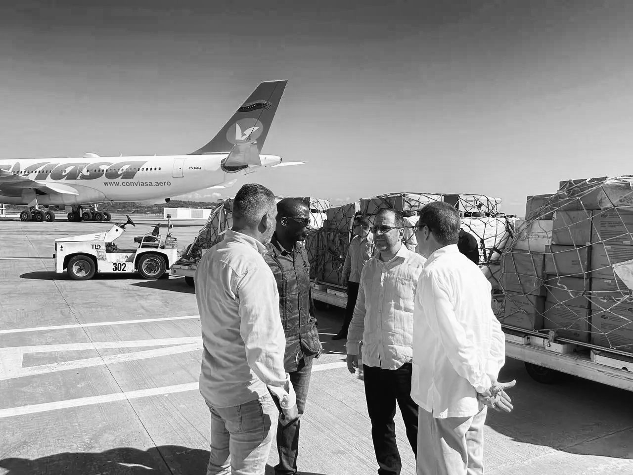 El diplomático detalló que 26 toneladas de insumos médicos, alimentarios y de infraestructura fueron despachadas en un vuelo de la aerolínea Conviasa a Cuba, mientras que otras 20 toneladas se destinaron a Jamaica para asistir a la población.
