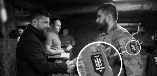 En las fotos y el video publicados por el líder del régimen ucraniano figuran símbolos estilizados de las insignias militares de la Alemania nazi.