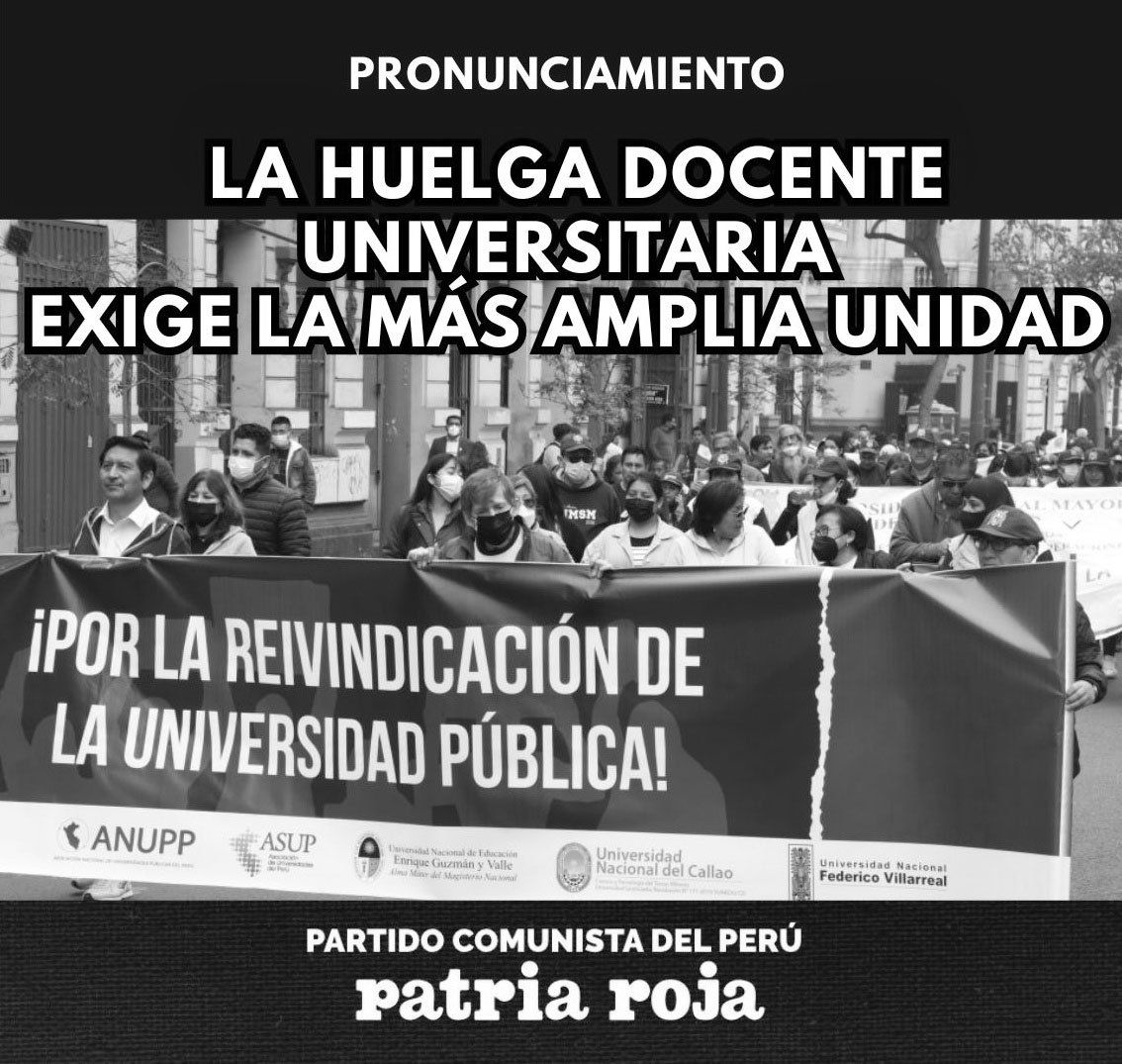 - “Somos todavía pocos para dividirnos”, dijo hace más de un siglo el Amauta José Carlos Mariátegui. Sus palabras tienen plena vigencia en estos tiempos de gran fragmentación de las organizaciones sindicales y populares. Y esto es plenamente válido para la organización sindical de los docentes universitarios; tener tres federaciones nacionales (con nombres similares o parecidos) y enfrentar una medida de lucha sin contar con una dirección unitaria es dar demasiada ventaja a la coalición de derecha que hoy gobierna el país, perder la perspectiva de conjunto y caminar hacia el fracaso.