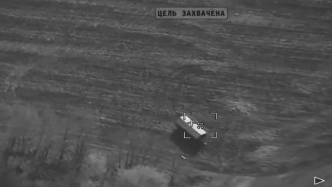 Un canal militar divulgó el miércoles un video que muestra el momento en que un dron kamikaze ruso Lancet, apodado 'Kaláshnikov volador', de la agrupación Este, destruye una plataforma móvil de lanzamiento de drones de las fuerzas ucranianas en la provincia de Dnepropetrovsk.