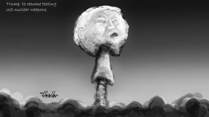 Hedelberto López Blanch*.— El convicto presidente dio la instrucción alegando «los programas de ensayo de otros países» en alusión directa a Rusia que la semana pasada realizó pruebas con armas de propulsión nuclear, como los misiles Burevésnik y Poseidón, las cuales, significó Moscú, no fueron en absoluto ensayos nucleares.