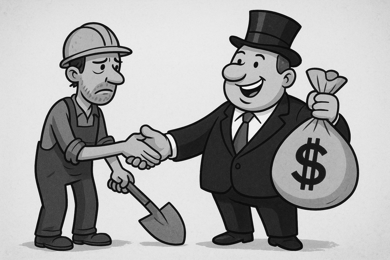 Si un trabajador produce su salario en 4 horas, pero trabaja 8, las 4 horas restantes son trabajo excedente, plusvalía, la fuente primaria de beneficio. Es el robo legalizado y sistematizado por excelencia.