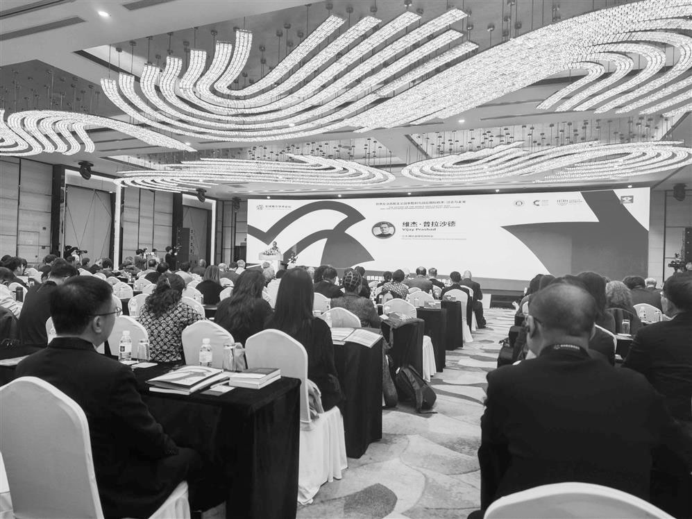 Prashad explicó la compleja relación entre fascismo, capitalismo y colonialismo, al tiempo que abogó por restaurar la verdad histórica para lo cual se presentó el reporte titulado El 80 aniversario de la victoria en la Guerra Mundial Antifascista.