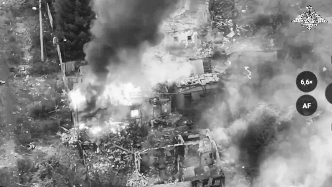 El ministerio compartió imágenes que muestran cómo las unidades de drones rusos «eliminan a los neonazis que se esconden en edificios de apartamentos y casas particulares, así como en garajes y construcciones auxiliares».
