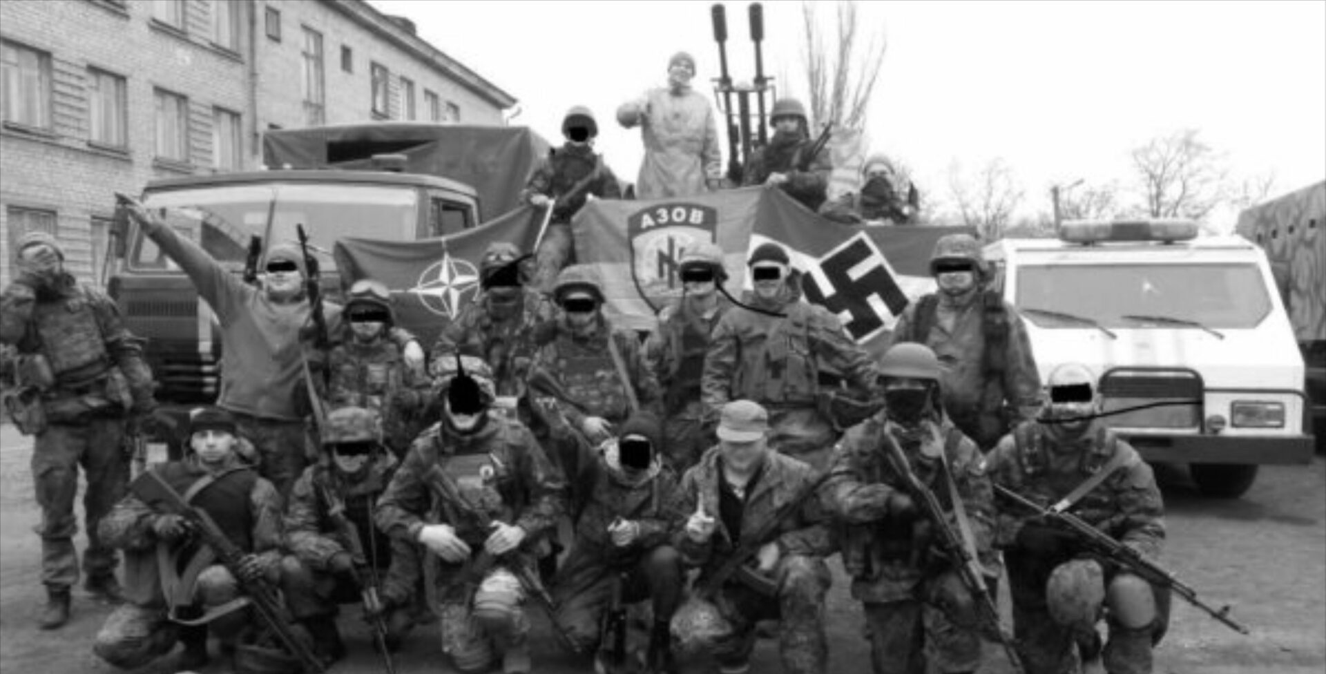 (En la imagen, el momento donde los nazis y otanicos mostraron sus estandartes al invadir el Donbas).