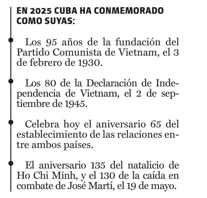 A la Mayor de las Antillas y a Vietnam las unen sus épicas historias, sus próceres y un caudal de mágicas coincidencias que hacen más bella su imperecedera amistad.