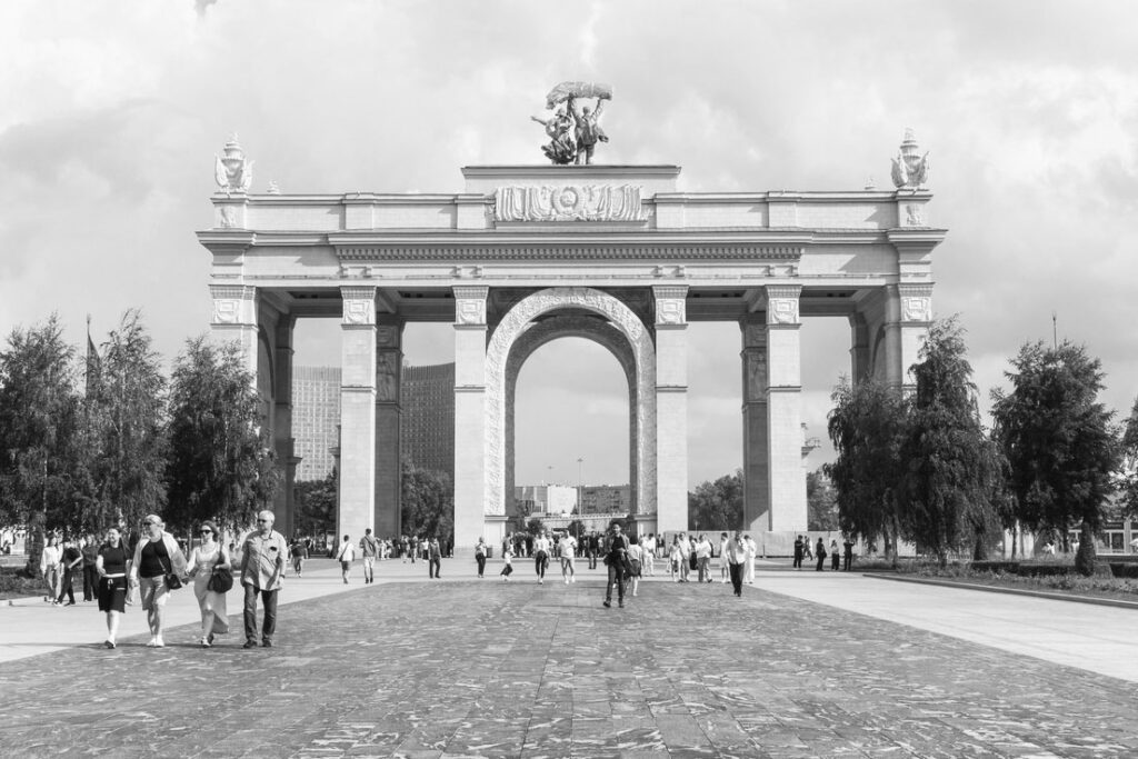 Arco de entrada principal en la Exposición de Logros de la Economía Nacional. | Gettyimages.ru