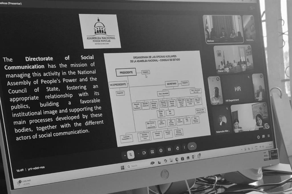 La Segunda Secretaria de la Embajada Zailin Gaulhiac y el Director de Relaciones Internacionales del legislativo Jesús Rafael Mora participaron por la parte cubana en la videoconferencia, que concluyó con un segmento de preguntas y respuestas, así como de propuestas para avanzar en un plan de cooperación comunicacional parlamentaria.