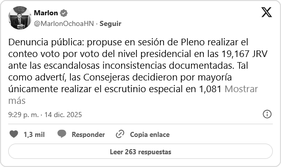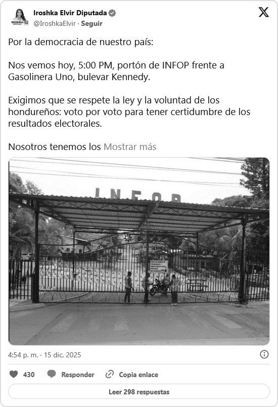 Los llamados de Libre se enmarcan en un clima de alta tensión postelectoral, donde tanto su candidata, Rixi Moncada, como Salvador Nasralla del Partido Liberal, han denunciado fraude electoral. El partido rechaza lo que denomina «maniobras oscuras» y una «imposición», exigiendo transparencia absoluta con un principio irrenunciable: «Abran las urnas. Recuento voto por voto, acta por acta».