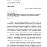 Finalmente, el Gobierno bolivariano solicitó que se reafirme, por vía escrita, que no existe ninguna resolución que autorice acciones contra Venezuela ni contra su comercio de petróleo, y que la comunicación sea distribuida como documento oficial del Consejo a todos los Estados miembros.