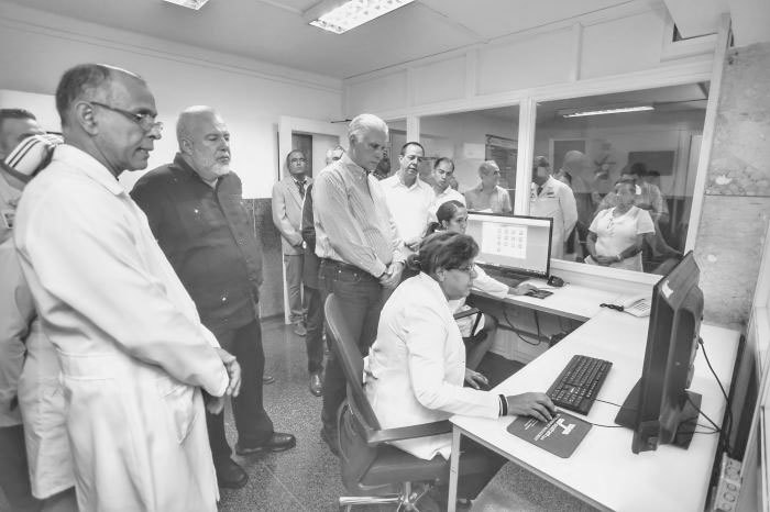 Para conocer los progresos de las instituciones del sector de la Salud en la transformación digital, una prioridad para el país, el Primer Secretario del Comité Central del Partido y Presidente de la República, Miguel Díaz-Canel Bermúdez, recorrió este viernes centros médicos en la capital.