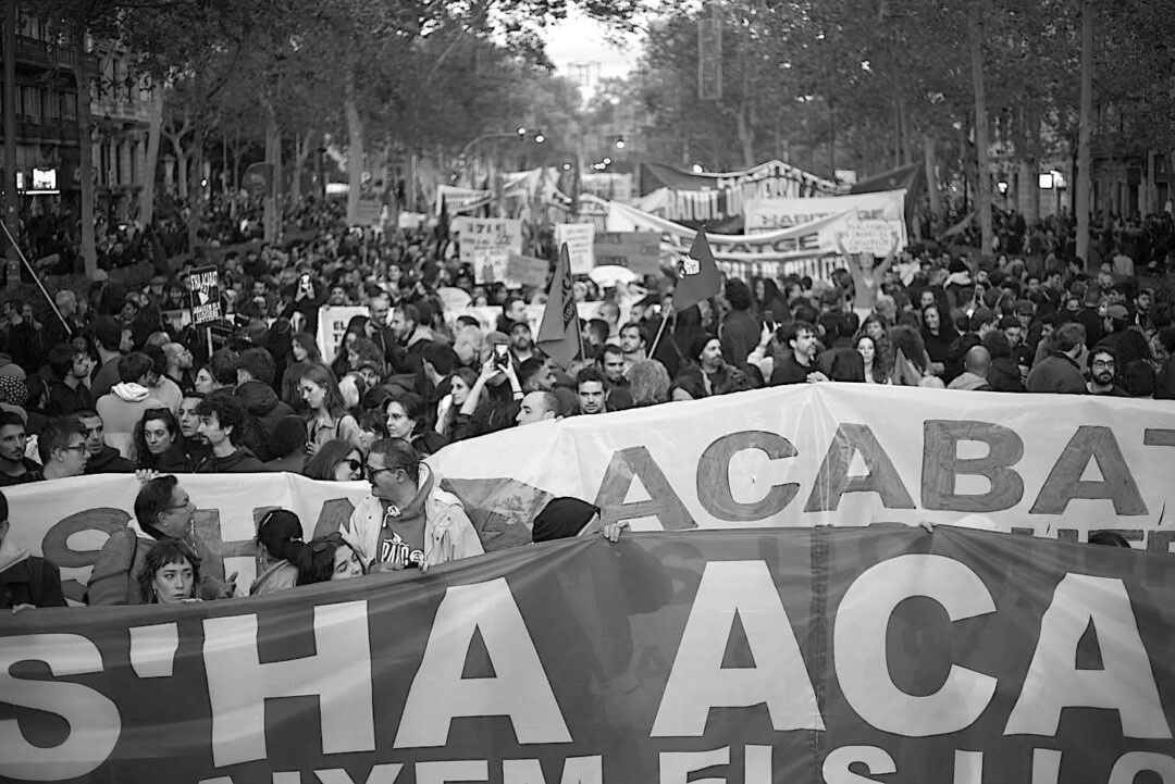 Sin embargo, las convocatorias del curso pasado y en particular el 5 de abril en Catalunya, la manifestación unitaria estatal, también fueron una muestra de limitaciones que debemos superar. Nos referimos, en concreto, al hecho de que en lugar de aprovechar la fuerza demostrada en la manifestación del 23N y la afluencia masiva que podía volver a congregar el movimiento, se apostara por una manifestación con un formato de «mitin», de nuevo centralizada en Barcelona y con un mayor componente de autoconsumo. Si bien es cierto que a la segunda convocatoria del curso no se pudieron dedicar tantas fuerzas como en la anterior, creemos que evidenció una falta de ideas respecto al desplegar formas de lucha que permitan escalar el conflicto, cayendo en una manera de hacer por inercia que nos dificulta avanzar y nos puede conducir al desgaste y la desmovilización.