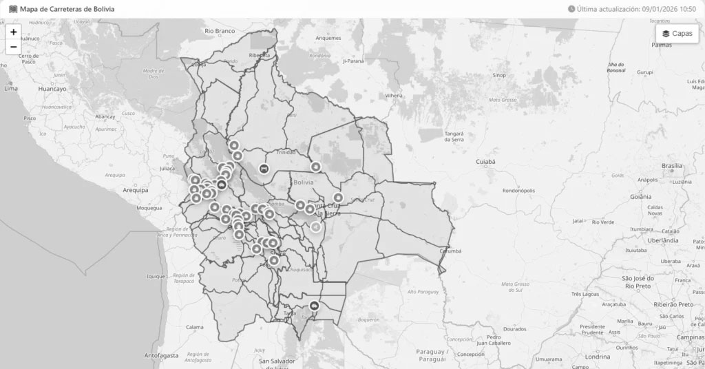 Según aquella dependencia, Potosí tenía seis puntos de bloqueo, Oruro al menos ocho y en Santa Cruz se registraban cuatro. La agencia precisaba que el departamento de Cochabamba (centro) estaba aislado del resto del país andino.