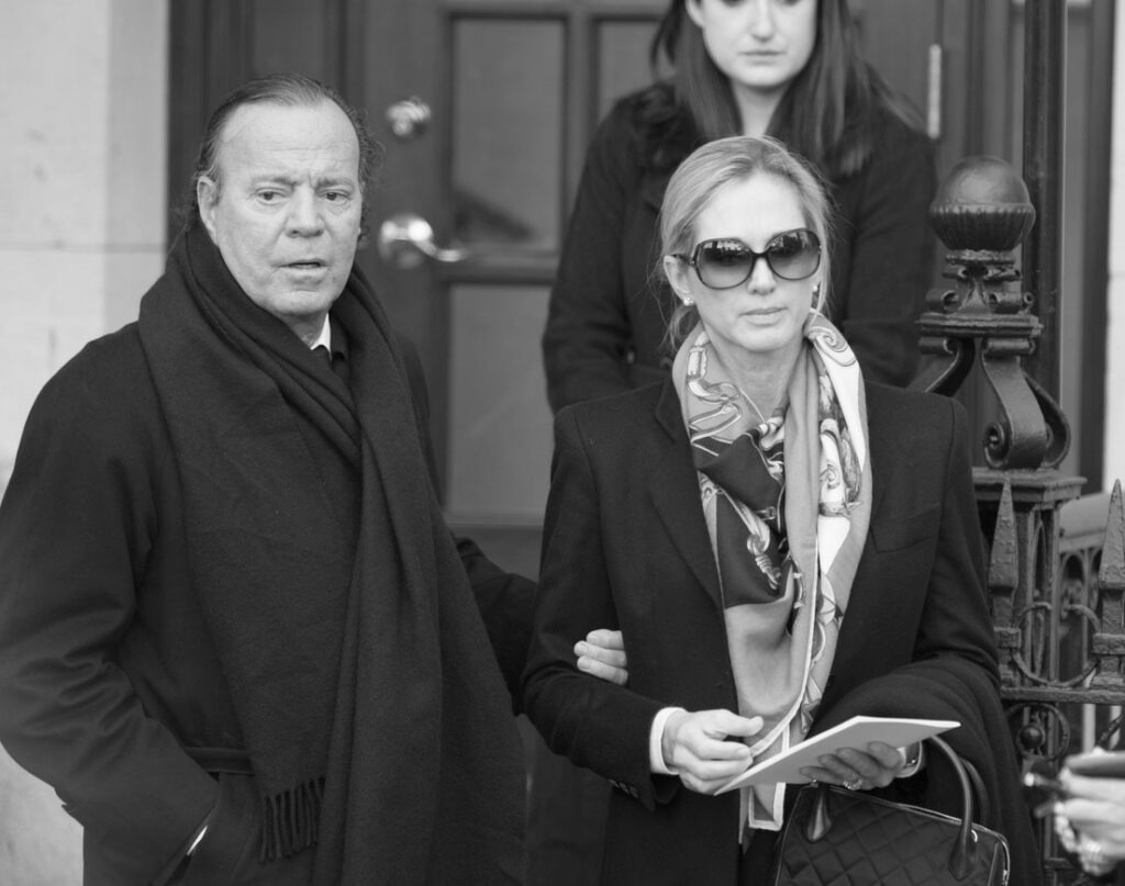 Julio Iglesias y su esposa Miranda Rijnsburger en el funeral del diseñador de moda Óscar de la Renta, en Nueva York, el 3 de noviembre de 2014.Dave Kotinsky / Gettyimages.ru
