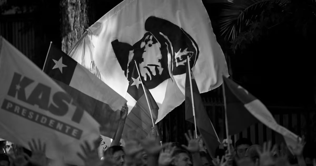 Con esos antecedentes, y en la sombría “democracia chilena”, las elecciones en segunda vuelta entre Jeannette Jara y José Antonio Kast han dado la victoria de este último por 16 % de diferencia. Kast se ha visto arropado en sus mítines por las banderas chilenas junto a pancartas acartonadas con la imagen del criminal, traidor y asesino Pinochet. Kast va a ser un “kastigo” para el pueblo chileno.