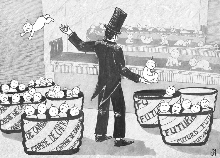 Llegados a este punto podemos afirmar que existe la pobreza infantil porque existe el capitalismo. La infancia precarizada sufre así una doble explotación sobre sus vidas, por su clase social y por su dependencia económica, al mismo tiempo que le garantiza al capitalismo la futura mano de obra barata y su ejército industrial de reserva, en un modelo productivo donde se reproducirán y perpetuarán las diferencias. Mientras, la estrategia de la burguesía, a través de su estado y sus medios de comunicación, es la de hablar de exclusión sin cuestionar el sistema, culpabilizando a las familias o, directamente mandarlos a la beneficencia sin cuestionar su sistema de producción y las diferencias sociales que se reproducen y agrandan en el modelo productivo capitalista.