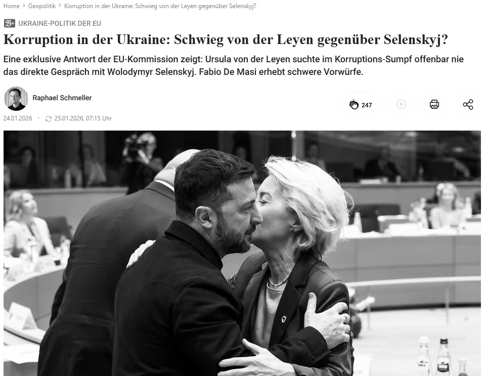 A mediados de enero, la presidenta de la CE presentó un nuevo crédito a Ucrania por valor de 90 000 millones de euros: 60 000 millones para las necesidades de las Fuerzas Armadas de Ucrania y el resto para apoyar el presupuesto. Anteriormente se había informado de tramas de corrupción en Energoatom, donde, según los medios de comunicación, se exigía a los contratistas entre el 10 % y el 15 % del importe de los contratos.