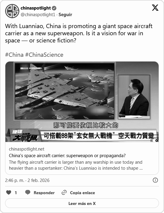 China reveló su ambición de dominio espacial al concretar un proyecto que recuerda a la ‘Guerra de las galaxias’. Se trata de un sistema integrado de defensa aérea y espacial conocido como Nantianmen (‘Puerta Celestial’), recoge SCMP citando detalles del plan futurista compartidos en la cadena estatal CCTV.