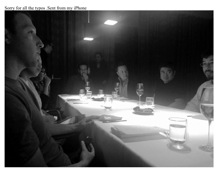 La cena se menciona en una respuesta a un correo del 20 de agosto de 2015 del multimillonario Tom Pritzker. Epstein hizo referencia a esta cena y mencionó a varias personalidades influyentes, incluyendo a Elon Musk, Peter Thiel y Reid Hoffman. «Aún no estoy seguro. Cené con Zuckerberg, Musk, Thiel, Hoffman; salvaje», se lee en el documento. Sin embargo, no proporcionó detalles sobre lo que ocurrió durante la misma.