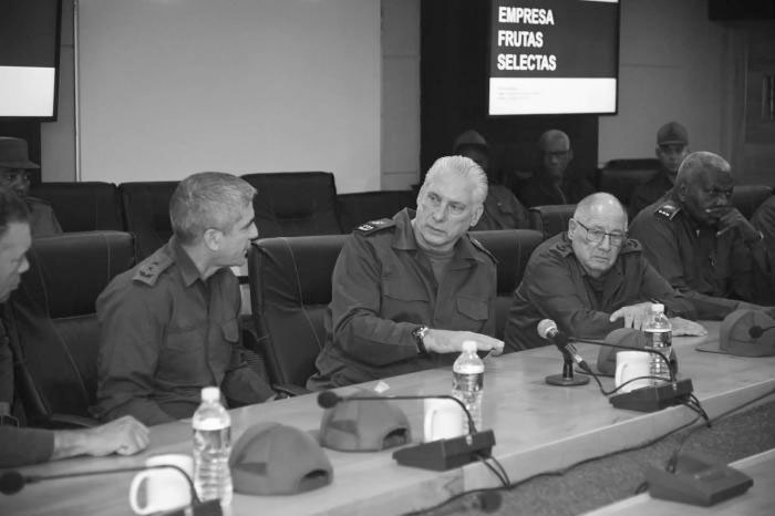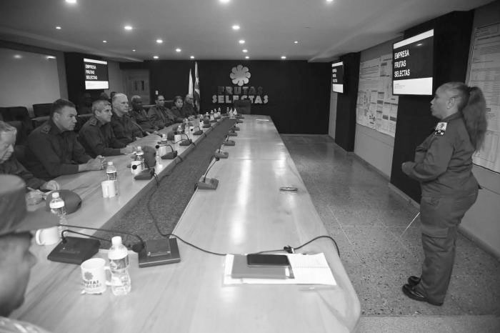 Si hay preparación y cohesión, quien se atreva a invadir terreno cubano encontrará fuerzas muy hostiles, se afirmó en la reunión de puntualización desarrollada específicamente en la Empresa Nacional «Frutas Selectas», la cual contó también con la presencia del miembro del Consejo de Defensa Nacional, Esteban Lazo Hernández; con el Ministro de las Fuerzas Armadas Revolucionarias (FAR), General de Cuerpo de Ejército Álvaro López Miera -ambos, miembros del Buró Político-; con el jefe del Estado Mayor Nacional de la Defensa Civil, General de División Ramón Pardo Guerra; con el jefe del Ejército Occidental, General de División Ernest Feijóo Eiró; así como con el Presidente del Consejo de Defensa Provincial de La Habana, Liván Izquierdo Alonso; y con la Vicepresidenta Yanet Hernández Pérez.