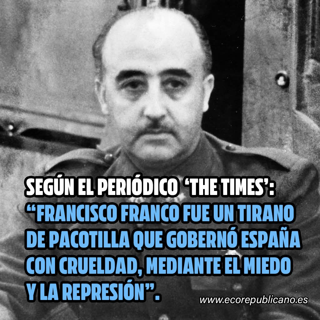 Francisco Franco no fue otra cosa que un criminal y un traidor sin honor que ayudó a destruir la II Republica, la republica de la esperanza nacida de la decisión de un pueblo que quería libertad, igualdad y progreso frente a la España de los curas y los señoritos.