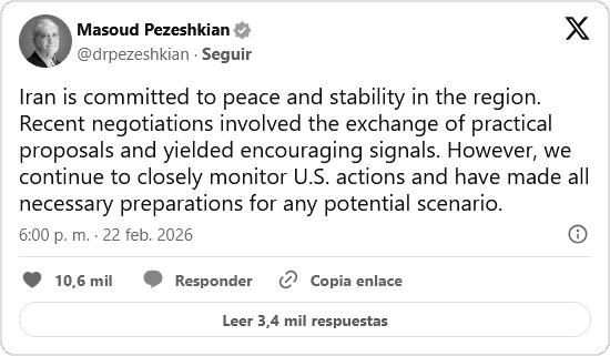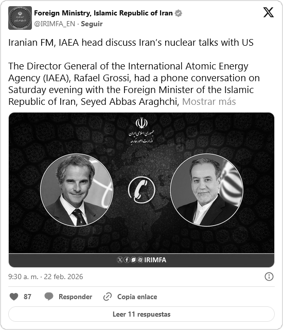 El ministerio de Exteriores de Omán, Badr bin Hamad al Busaidi, confirmó este domingo 22 de febrero que la próxima sesión de negociaciones entre Estados Unidos Irán se celebrará en GinebraSuiza