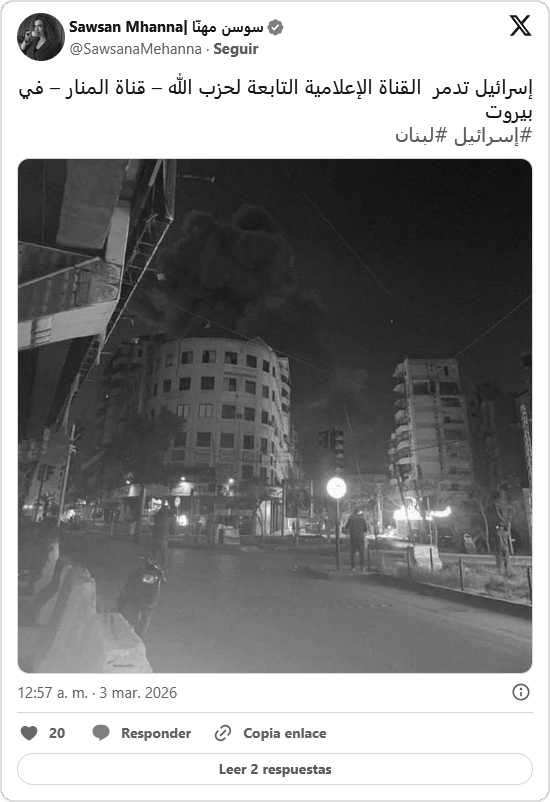 La aviación israelí ha llevado a cabo un ataque al sur de Beirut contra la sede del canal de televisión Al Manar, operado por Hezbolá, así como contra la emisora libanesa Al Nour, reporta Al Mayadeen.