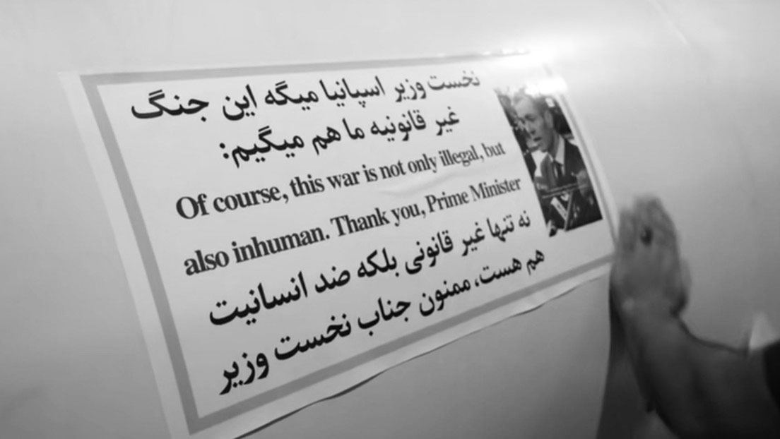 En esta oleada, algunos de sus misiles tenían pegados letreros de agradecimiento al presidente del Gobierno de España, Pedro Sánchez, junto a su foto; esto en referencia a sus declaraciones de este viernes. «Por supuesto, esta guerra no es solo ilegal, sino también inhumana. Gracias, primer ministro [Pedro Sánchez]», se lee en uno de los letreros.