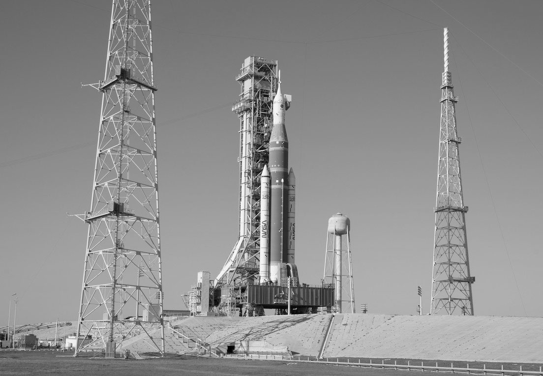 El cohete SLS de la NASA en el complejo de lanzamiento 39B, el viernes 27 de marzo de 2026. | NASA