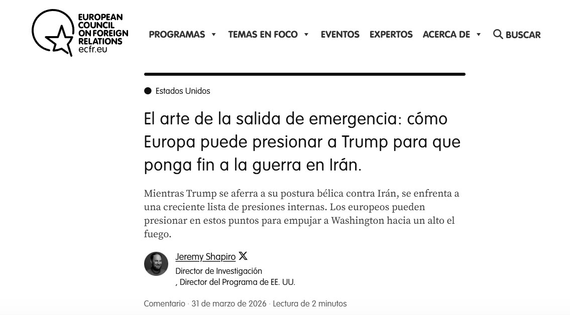 Son estadounidenses, piensan como estadounidenses (es un decir, lo de que piensan), y así dicen que pese a todos los daños infringidos a Irán «no solo no capitula, sino que «conserva la capacidad de dar una respuesta sistémica». Por eso, se lamentan, «cada paso exige que Estados Unidos e Israel tomen decisiones cada vez más difíciles, incluido el posible despliegue de fuerzas terrestres, lo que aumenta drásticamente los riesgos». En este sentido, «la introducción de fuerzas terrestres estadounidenses no es sino una admisión del fracaso del modelo original».